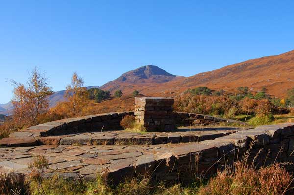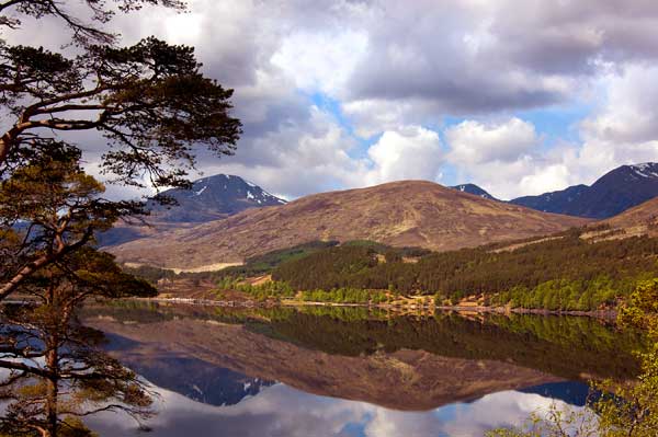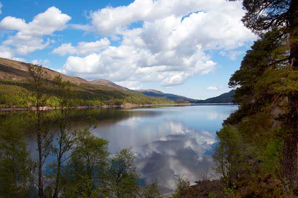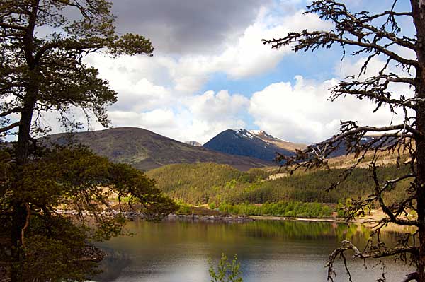 Continuing south-east on the forest road note the 'islands' in Loch Beinn a' Mheadhoin created by the raising of the water levels during the construction of the hydro schemes of the early 1950s. While the loch side is quite wooded there plenty of opportunities for taking in the spectacular scenery en route including outstanding views of Sgurr na Lapaich and Tom a' Choinich across the loch. There are several suitable places en route to enjoy a refreshment break while admiring the scenery.